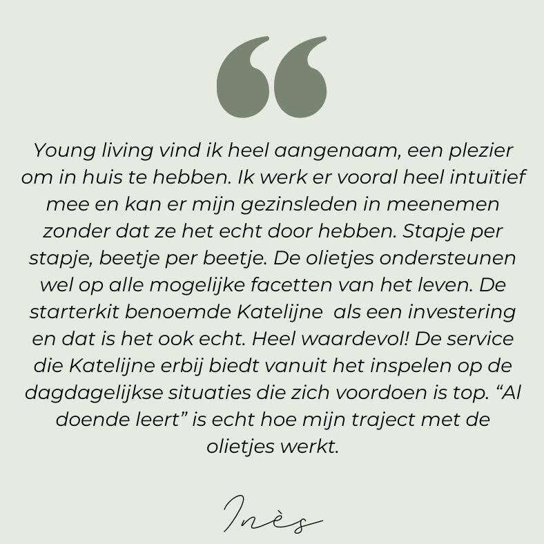 Zelf ontdekte ik de essentiële oliën van Young Living in januari 2020. Enkele druppeltjes in een aromadiffuser hielpen mijn zoon beter slapen. Niet veel later had elk gezinslid zijn of haar persoonlijke diffuser. De oliën hebben niet enkel een gunstig effect op onze nachtrust: de juiste blend in de aromadiffuser zorgt bijvoorbeeld ook voor extra concentratie wanneer we thuiswerken, onze dochter kan veel beter omgaan met haar faalangst en haar zelfvertrouwen groeit zienderogen.
